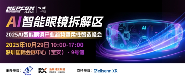 本届展会聚集影目、谷东、唯酷、大朋vr等 众多AI智能眼镜终端厂商汇聚,立体呈现从光学技术 、芯片与计算能力、传感器、交互技术、电池技术、轻量化材料等核心部件到终端应用的前沿新品,为企业与广大观众产品创新及研发提供更多的思考。展区配有2025 AI智能眼镜产业趋势暨柔性智造峰会 ,多位AI智能眼镜知名企业领袖及代表,深入分析智能眼镜产业生态及柔性制造技术,为广大观众揭秘智能眼镜产业技术底层逻辑与发展趋势,撬动智能眼镜蓝海商机!